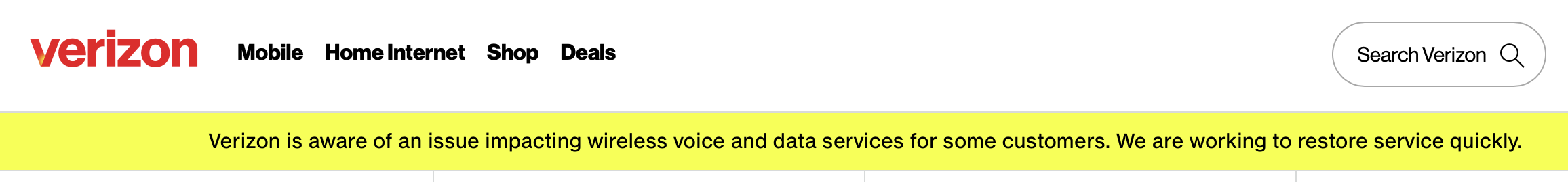 Verizon said it was aware of the issue and that engineering teams were working to restore service. It t did not immediately provide details on the cause of the outage or a timeline for full resolution.