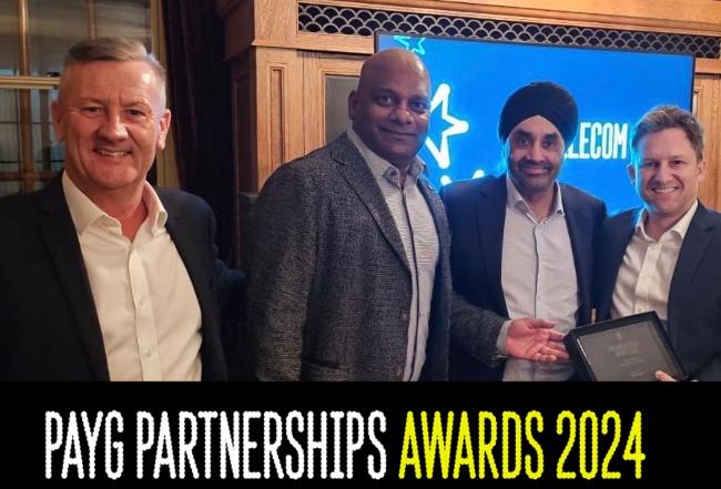 Six EE distributors were recognised at the EE PAYG Partnership Awards 2024, held last Thursday at The Ned, a private members’ club in London (Main pic And Wilton EE Senior Manager, Ravi Navaratnam MD GK Telecom, Gummy Dulku Director, GK Teleco) Lewis Milward EE New Market Director – Commercial. Winners are: GK Telecom – Best